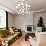 - Первый этаж: сердце дома – стильная кухня 21,4 м2, укомплектованная новой премиальной техникой, и роскошная гостиная 57,8 м2 с камином, где так приятно вести душевные беседы. Гостевой санузел добавляет удобства для вас и ваших гостей.