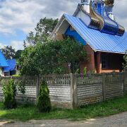 Сама деревня достаточно большая, есть магазин, ферма, приходит автолавка., недалеко от дома автобусная остановка , рядом церковь.