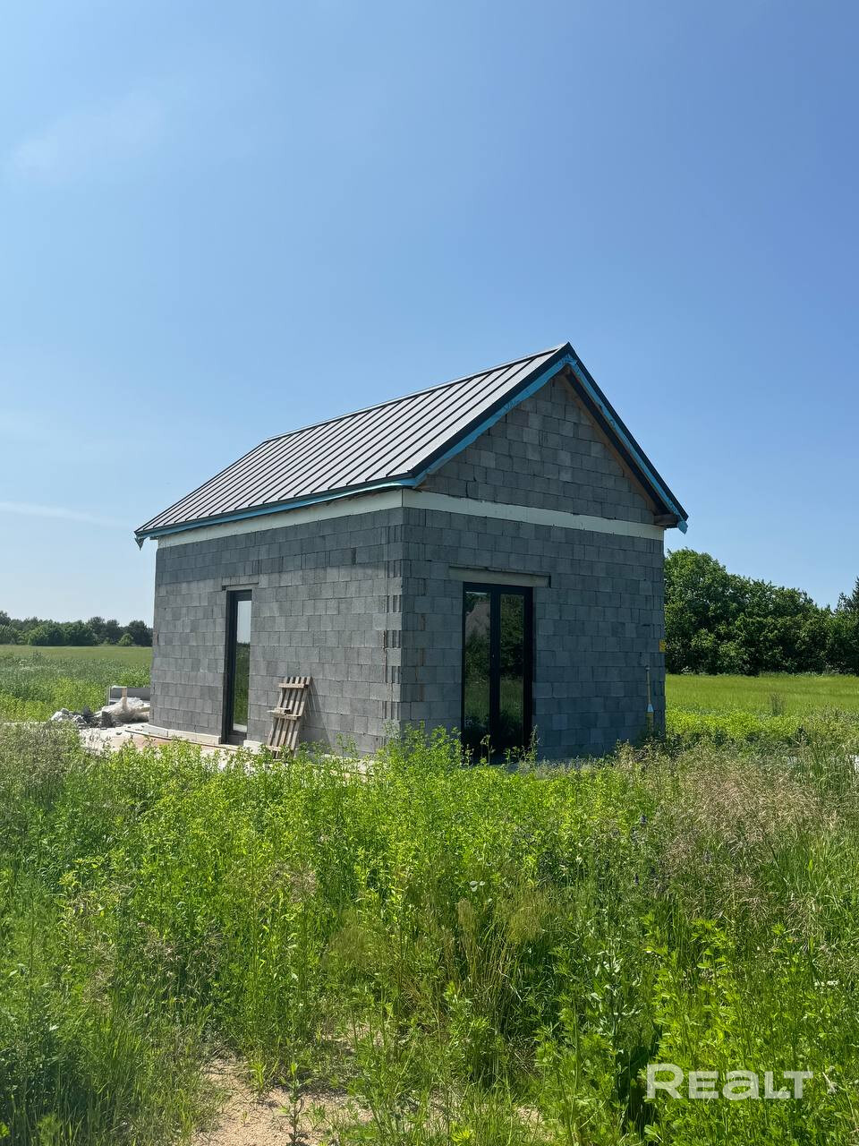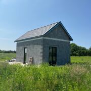 Хороший вариант под гостевой дом или дачу. Ровный прямоугольный участок, без соседей по бокам, в поле. В будущем так и останется. На участке дом 5,4х8,4м. Свайно-ростверковый фундамент. Стены из керамзитобетона 400мм. Крыша двухскатная клик-фальц, металлопрофиль. Окна тёплый алюминий от Алютеха. В дом заведена центральная холодная вода, подключен газ. В доме метал.лестница на 2 этаж. Электричество на стройплощадку 6кВТ. Рядом с деревней новая заправка, в 7км Вилейка и вдхр. До улицы асфальт.