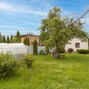 Ровный, плодородный участок 7,98 соток. По всему периметру установлено ограждение из металлопрофиля. На территории участка построен гараж с ямой.