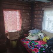 Деревянный дом (брус, обшалеван доской), площадью 62.2 м2, 1 уровень, есть холодная пристройка, большая кухня- 21 м2, крыша- шифер, отопление- новая печь, газ- балон, туалет на улице.