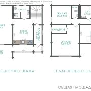 Общая площадь 289.5 м2, жилая - 127.9 м2, кухня – 21.3 м2.