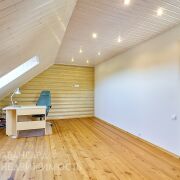 Третий этаж - главная спальня с гардеробом и видом на водохранилище, а также кабинет и еще одна жилая комната. Санузел и ванная.