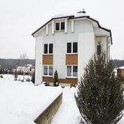 Материал стен (блоки и кирпич) оштукатурены " Короедом ", декоративная отделка камнем, лестница облицована плиткой, перила ковка, окна ПВХ «SALAMANDER», мягкая кровля «KATEPAL», установлена сигнализация, видеокамеры, видеодомофон; ворота металлопрофиль открываются с пульта, гостевая парковка и гараж так же с пульта + кодовый замок на калитке; автополив по всей территории участка, фонари.