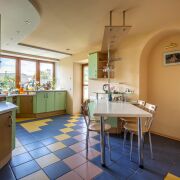 Дом занимает три полноценных этажа, каждый из которых продуман до мелочей. Два гаража и множество кладовых помещений. Уникальные архитектурные решения создают гармонию между внутренним пространством и окружающей средой, а также обеспечивают естественное освещение в каждом уголке дома.