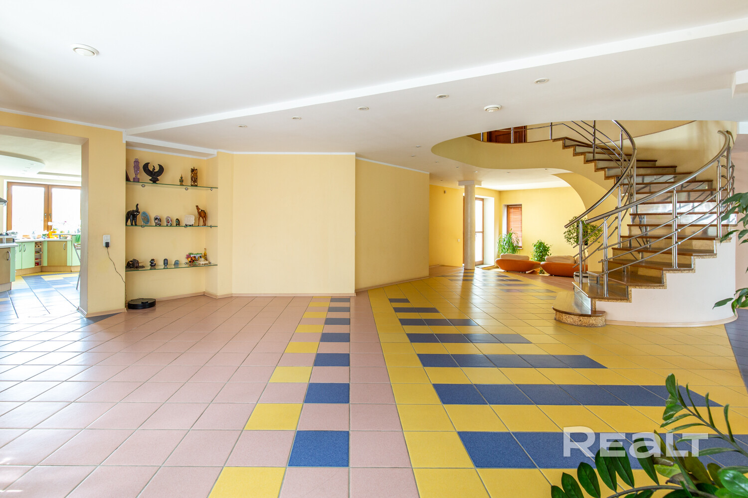 На первом этаже расположены основные зоны для жизни и отдыха. Открытая планировка кухни, столовой и гостиной создает атмосферу простора и комфорта. Также на первом этаже располагается сауна и бассейн, которые позволяют вам расслабиться после долгого рабочего дня.