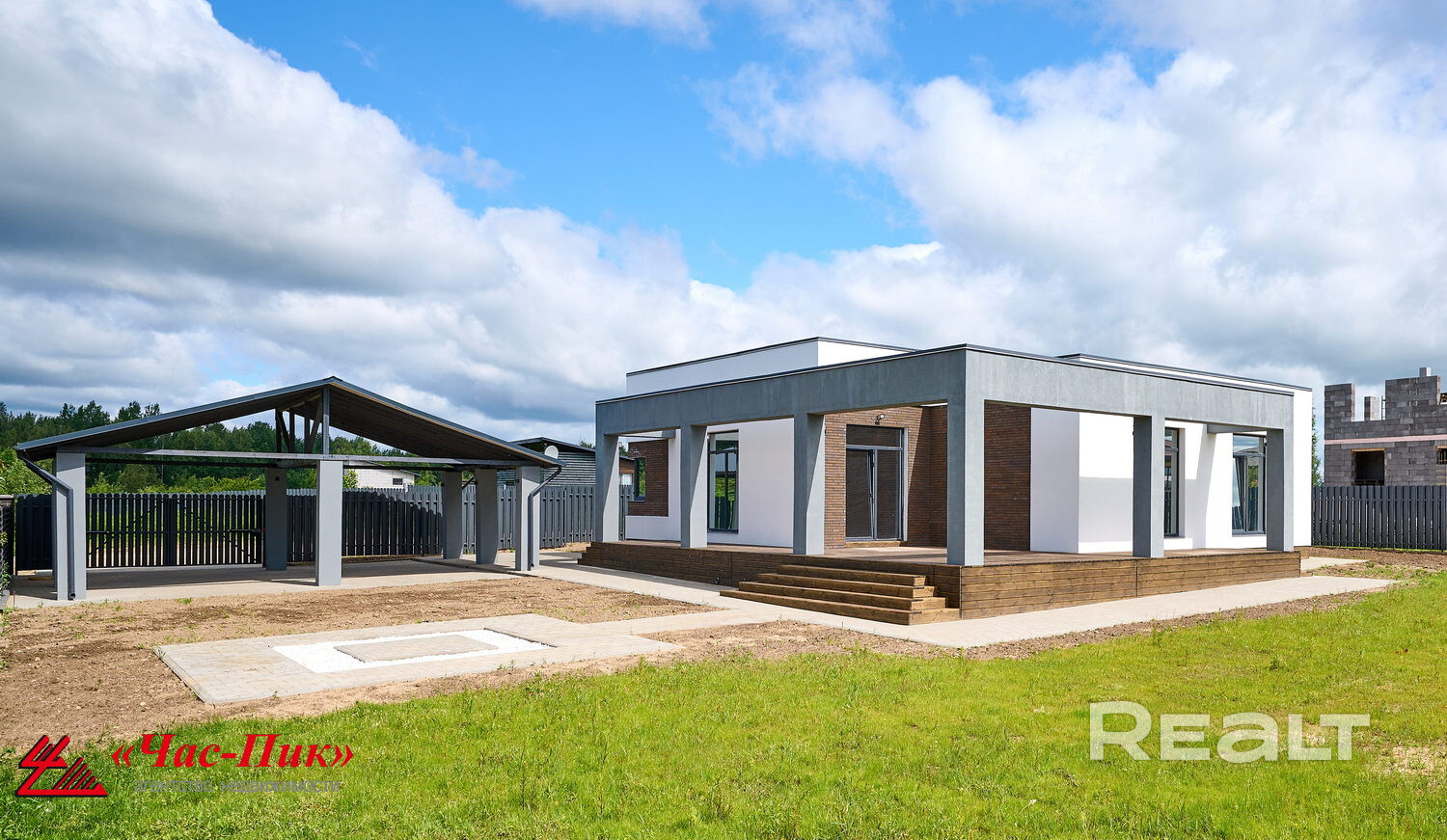 - Просторный навес для авто; Просторная терраса 76,9 м2! Откатные ворота с электроприводом! Зарядка для электромобиля!