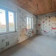 Одноэтажный дом на свайно-ростверковом фундаменте с гранитной крошкой. Дом из толстого 400мм газосиликатного блока. Утепление 100мм минвата. Зимой тепло, летом в доме прохладно. Электропроводка, интернет разведены по всему дому, видеонаблюдение по периметру дома (провода). 3 полноценных вентканала (3 кирпичные трубы) для санузлов и кухни. Огромный чердак с возможностью строительства там мансарды (более 80м2). НА ДАННЫЙ МОМЕНТ 5 изолированных комнат, 6-ю можно изолировать тоже если нужно. Размеры комнат: 15,7м2, 19м2, 18м2, 23,3м2, 10м2, 14м2. Просторная светлая кухня 27м2, 2 просторных сан.узла (8,5м2 и 6.2м2). Топочная 10.8м2. Коридоры широкие. С кухни планировался выход на террасу перед домом. С обратной стороны дома есть место для большой террасы. В доме качественные стеклопакеты Rehau и Plafen. Потолок 3,2м. Готовность дома 78%. Первоначальную планировку видно на фото. В доме много возможностей перепланировки и дизайна под себя. Можно сделать меньшее количество комнат с большей площадью. Кухню (27.5м) запланировали вместо гаража. Но можно еще вернуть гараж. Тогда кухня будет с 2мя окнами 15.6м. Ровный, прямоугольный участок. Дорога полностью асфальтирована до дома. Короткая, тихая улица. Рядом лес, около 250м от дома пройти и легко можно наслаждаться лесными прогулками. Развитая инфраструктура. В пешей доступности 2 современные новые школы (одна из них с бассейном), детский сад, новый ФОК, магазины и др. Связь по телефону и телеграму Юлия собственник. Агентам не беспокоить.