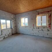 Одноэтажный дом на свайно-ростверковом фундаменте с гранитной крошкой. Дом из толстого 400мм газосиликатного блока. Утепление 100мм минвата. Зимой тепло, летом в доме прохладно. Электропроводка, интернет разведены по всему дому, видеонаблюдение по периметру дома (провода). 3 полноценных вентканала (3 кирпичные трубы) для санузлов и кухни. Огромный чердак с возможностью строительства там мансарды (более 80м2). НА ДАННЫЙ МОМЕНТ 5 изолированных комнат, 6-ю можно изолировать тоже если нужно. Размеры комнат: 15,7м2, 19м2, 18м2, 23,3м2, 10м2, 14м2. Просторная светлая кухня 27м2, 2 просторных сан.узла (8,5м2 и 6.2м2). Топочная 10.8м2. Коридоры широкие. С кухни планировался выход на террасу перед домом. С обратной стороны дома есть место для большой террасы. В доме качественные стеклопакеты Rehau и Plafen. Потолок 3,2м. Готовность дома 78%. Первоначальную планировку видно на фото. В доме много возможностей перепланировки и дизайна под себя. Можно сделать меньшее количество комнат с большей площадью. Кухню (27.5м) запланировали вместо гаража. Но можно еще вернуть гараж. Тогда кухня будет с 2мя окнами 15.6м. Ровный, прямоугольный участок. Короткая, тихая улица. Дорога полностью асфальтирована до дома. Развитая инфраструктура. В пешей доступности 2 современные школы, детский сад, бассейн, магазины и др. Связь по телефону и телеграму 80298673998 Юлия собственник. Агентам не беспокоить.