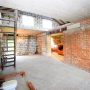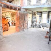 Стеновые блоки – 50 см, что не потребует дополнительного утепления. Тем не менее, есть возможность нарастить 10 см и выйти на уровень соответствующего карниза второго этажа. Все окна – двухкамерные стеклопакеты. Крыша – металлочерепица. Перекрытия – ж/б плиты. В доме превосходное естественное освещение (есть эркерный элемент)! Внутри дома – огромное количество стройматериалов. Все остается покупателю.