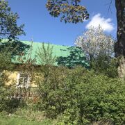 Продаётся дом с участком 25 соток. На участке находится амбар для сена и сарай на 2 дверей, колодец. Растут яблони, яблоки очень вкусные, сливы, алыча, 2 столетние груши. Дом старой постройки, но крепкий. Использовалось качественное дерево из своего леса. Для обогрева две печки, «русская» с лежанкой и «стояк» для обогрева другой комнаты. В кухне также есть «буржуйка». Печь требует ремонта. Через дорогу находится яблоневый сад, около 20 соток, старая антоновка, белый налив, каштель и др.