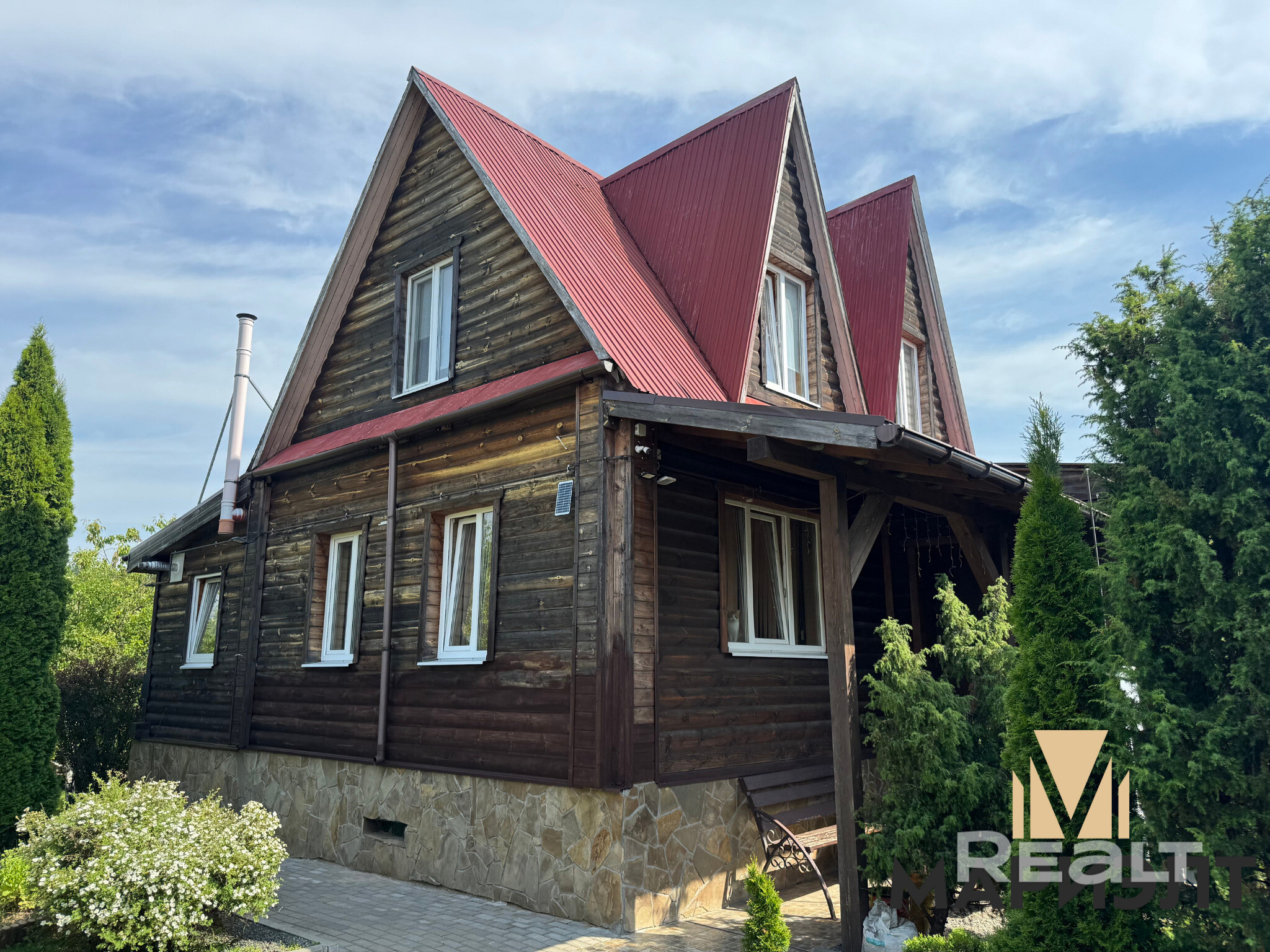Фундамент – железобетонные блоки, наружные и внутренние стены из деревянного бревна, перекрытия – деревянный брус, окна стеклопакеты. Крыша – металлический профнастил, установлена водосточная система для крыши (водостоки). Установлен бойлер, котёл, септик.