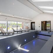 - оптимальная планировка дома: общая площадь 200 кв.м. с зоной закрытого барбекю, кухня-гостиная, 4 спальни, 2 сан.узла, гардеробные. Просторный СПА-комплекс 127 кв.м. с прилегающими террасами 75 кв.м.: бассейн с тех.помещением, сауна, сан.узел, душевая, раздевалка, комната отдыха с оборудованной собственной мини-кухней, котельная с техническим помещением (электрощитовая и места для хранения инвентаря). Бассейн с монолитной чашей, сматывающимися ламелями и подсветкой оснащен водопадом и противотоком. Размер 3x7м., глубина до 160 см. Сауна выполнена из ольхи и абаша с электрической печью с функцией пара и ароматерапии;