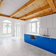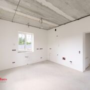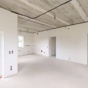 В холодных местах установлены радиаторы. Разведена электрическая система, в каждую комнату заведена витая пара. Предусмотрено место для этажного свитча, распределяющего сетевой трафик по помещениям. Просторная кухня, совмещённая с гостиной. Антуражное круглое окно большого размера. Просторный зал-гостиная. Прихожая с расположенным в ней электрощитком.