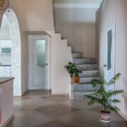 Дом: на участке стоит блочный дом 2013 года постройки. Дом теплый, уютный, просторный, светлый. В доме выполнен современный стильный ремонт из качественных материалов. На первом этаже имеется просторный коридор, 2 жилые комнаты, большая кухня-гостиная 51,1 м2, совмещенный санузел, теплый пол. На мансардном этаже 3 комнаты, гардеробная, санузел. Выполнена вся черновая отделка, поклеены обои, сделана стяжка под любое покрытие, полностью разведена электрика и отопление. Высота потолков- 2,90м. (1-й этаж), 2,46 (мансардный этаж). Фундамент – ФБС. Перегородки и стены-газосиликатные блоки. Панорамные окна-зеркальные стеклопакеты. Перекрытия деревянные.