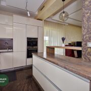 Установлены окна Rehau sib c теплосберегающим напылением, раздвижной слайдер – выход на террасу (Rota patio). Межкомнатные двери и лестница-массив ясеня. Входные двери фабричного производства Германии (Hormann).