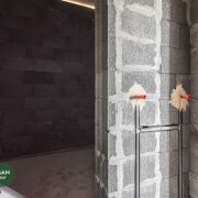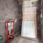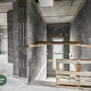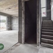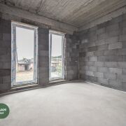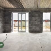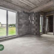 В доме на полу чистовая стяжка, стены-под штукатурку, в котельной установлены межкомнатные двери, входная дверь алюминиевая, производство Германия (SHUCO). Высота дверей 2,7м., выход на террасу алюминиевый слайдер Алютех. Окна VEKA топ серия 80 мм, с энергосберегающим напылением, ламинацией и скрытыми петлями. Высота окон 2,4 м.