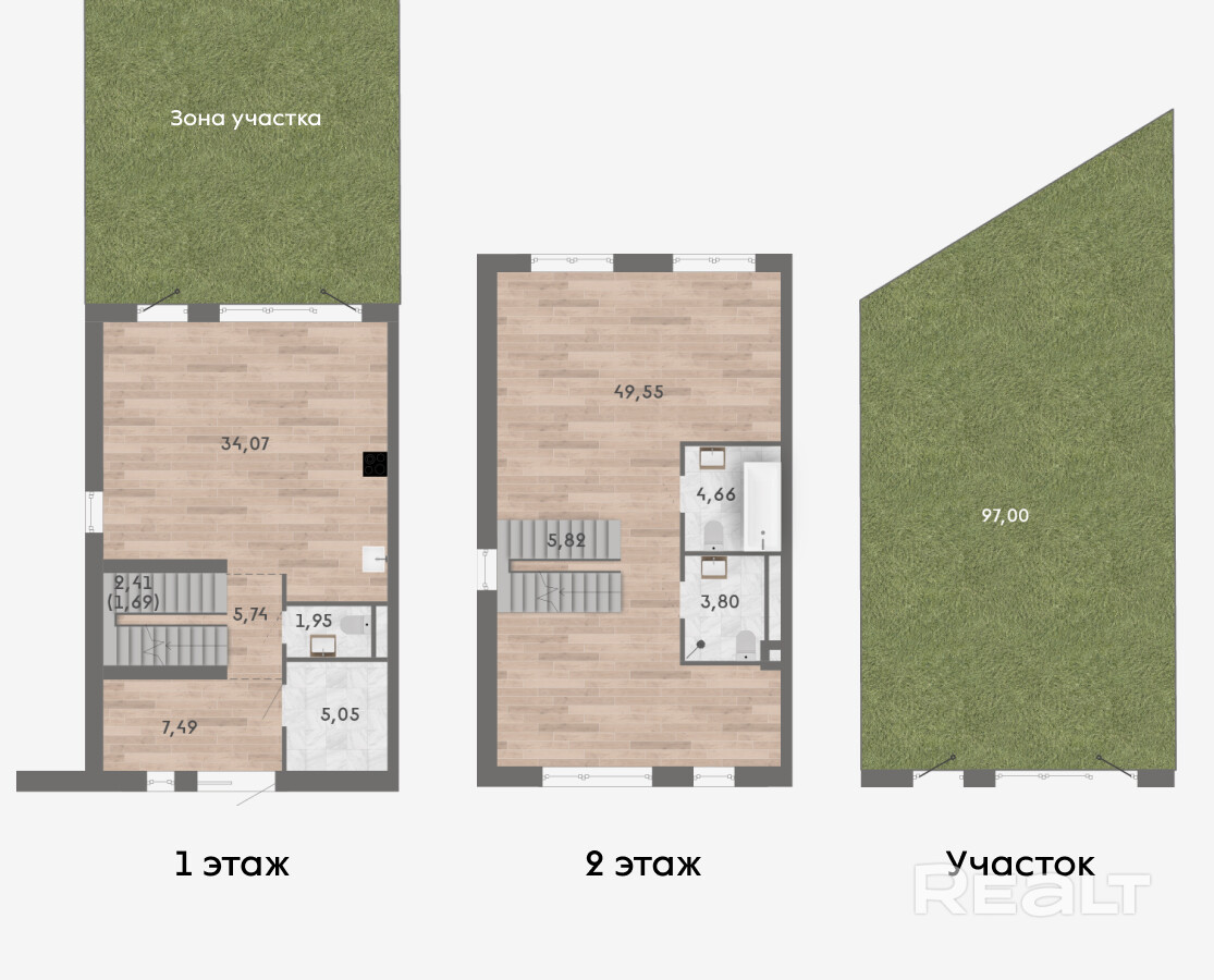 Площадь квартир от 119 м2. Собственный участок для каждой квартиры от 97 м2.