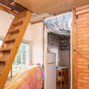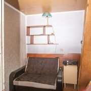 На участке расположен небольшой, но очень комфортный домик — идеальное место для ночевки или укрытия от непогоды, с возможностью круглогодичного проживания. Есть туалет на улице и сарай. Территория окружена деревьями, создавая атмосферу спокойствия и уюта.