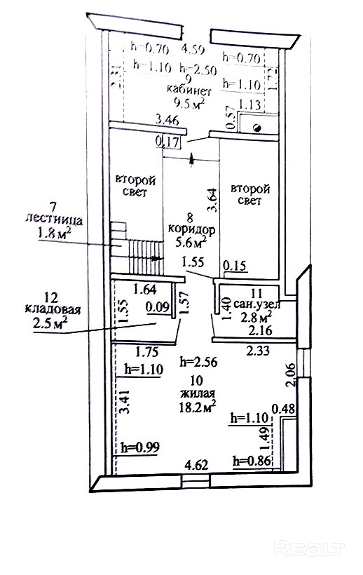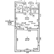 Первый этаж - прихожая, кухня-гостиная, комната, санузел с выводами канализации и вводом воды, подсобная комната, где установлен насос, введенный из скважины.