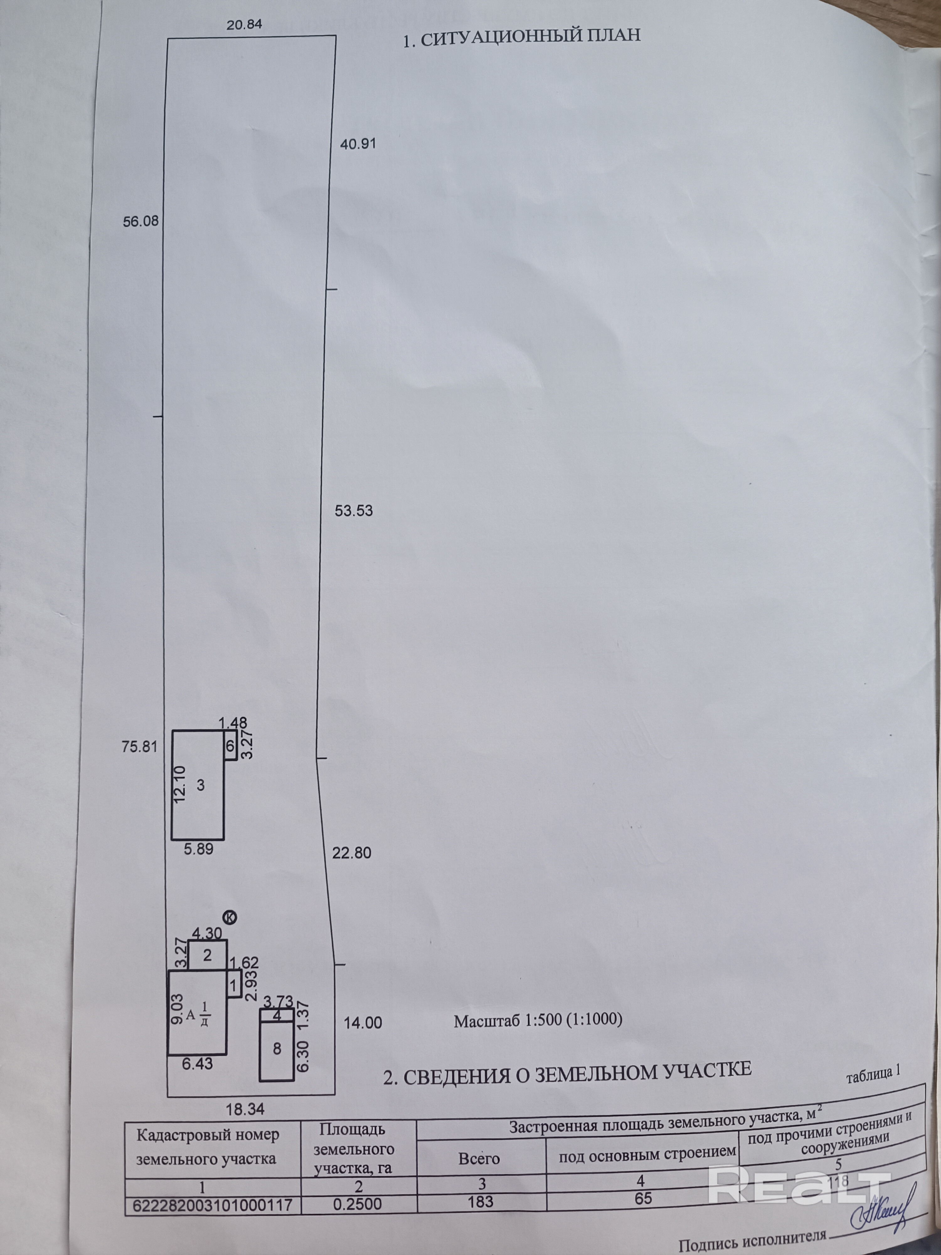 - Площадь участка