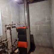 Топочная с нагревательным оборудованием расположена в коридоре как отдельное помещение без окна и без выхода на улицу. В топочной установлен котёл на электрическом оборудовании и бойлер для подачи горячей воды в дом.