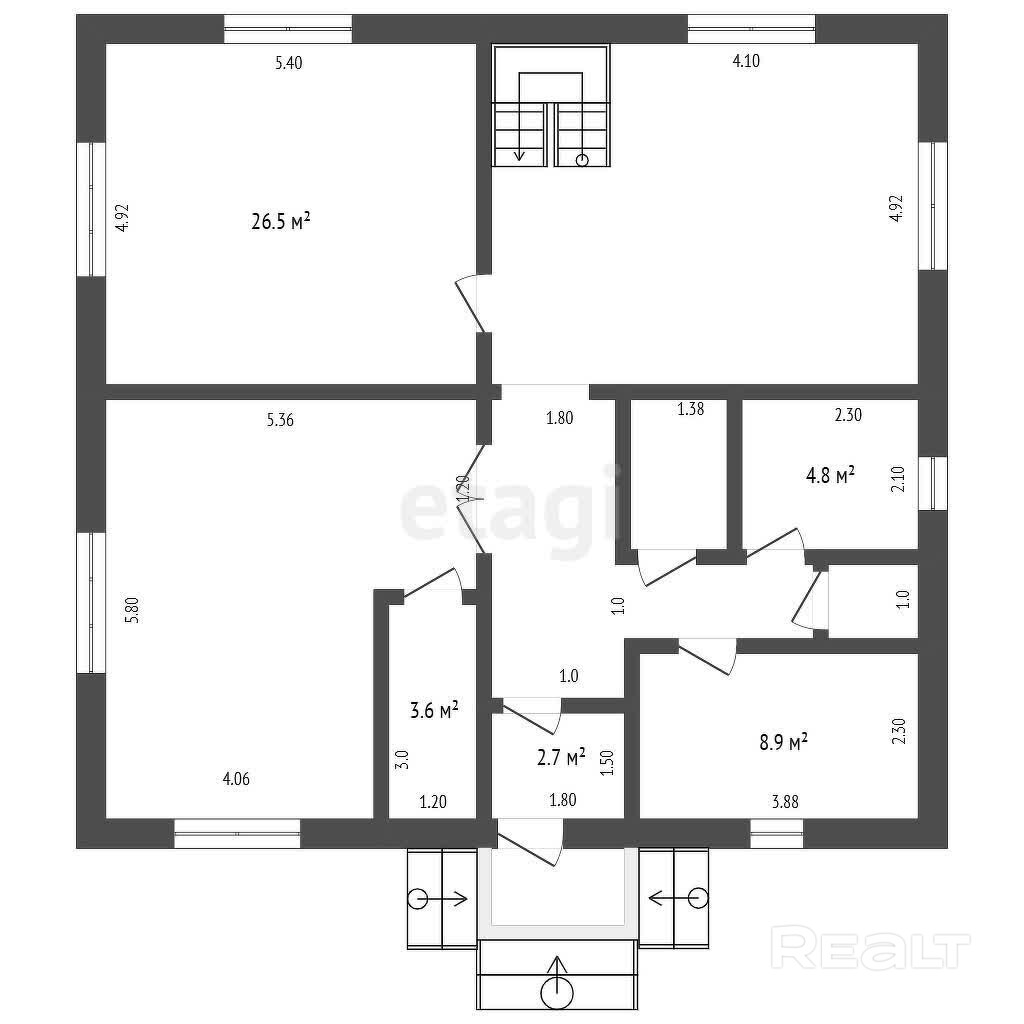 Внутри три просторных комнаты и гостиная.