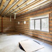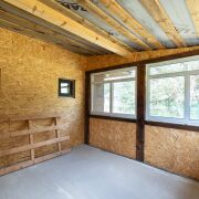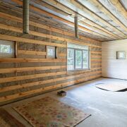 · При входе в строение через металлическую дверь – дверь будет меняться на новую.- Направо (где малое окно) Отдел 5х7 для автомобиля или стройматериалов;- Центр (при входе) дровник на 30 м3;- Налево (где большое окно) 26 м2 "благородная" кладовая. Оборудована системой полок 9 п/м (занимает две стены от пола до потолка)