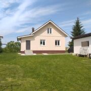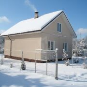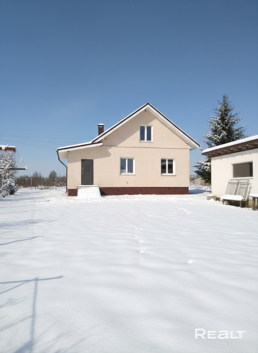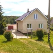 Новый дом, блочный, утеплён минватой 8см, покрыт декоративной штукатуркой, окрашен, крыша - металлочерепица. Имеется подвал 15м.кв. Дом пригоден для зимнего проживания, первый этаж 88 кв.м. отапливается печкой. Прихожая, кухня, гостиная, две спальни и туалет с душем. Второй этаж мансардный 50 кв.м. имеет две просторные комнаты. Дом полностью готов к проживанию, подведены свет, вода холодная и горячая (бойлер 100л), местная канализация.