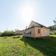 Дом построен в 1976 году, в 2010 перестроен: проведены коммуникации, улучшен фасад. Фундамент выполнен из бетона, стены - бревно (10см), обложены сайдингом, крыша шифер (не протекает, куплен материал для замены), окна ПВХ, канализация местная, 2 кольца, вода центральная.