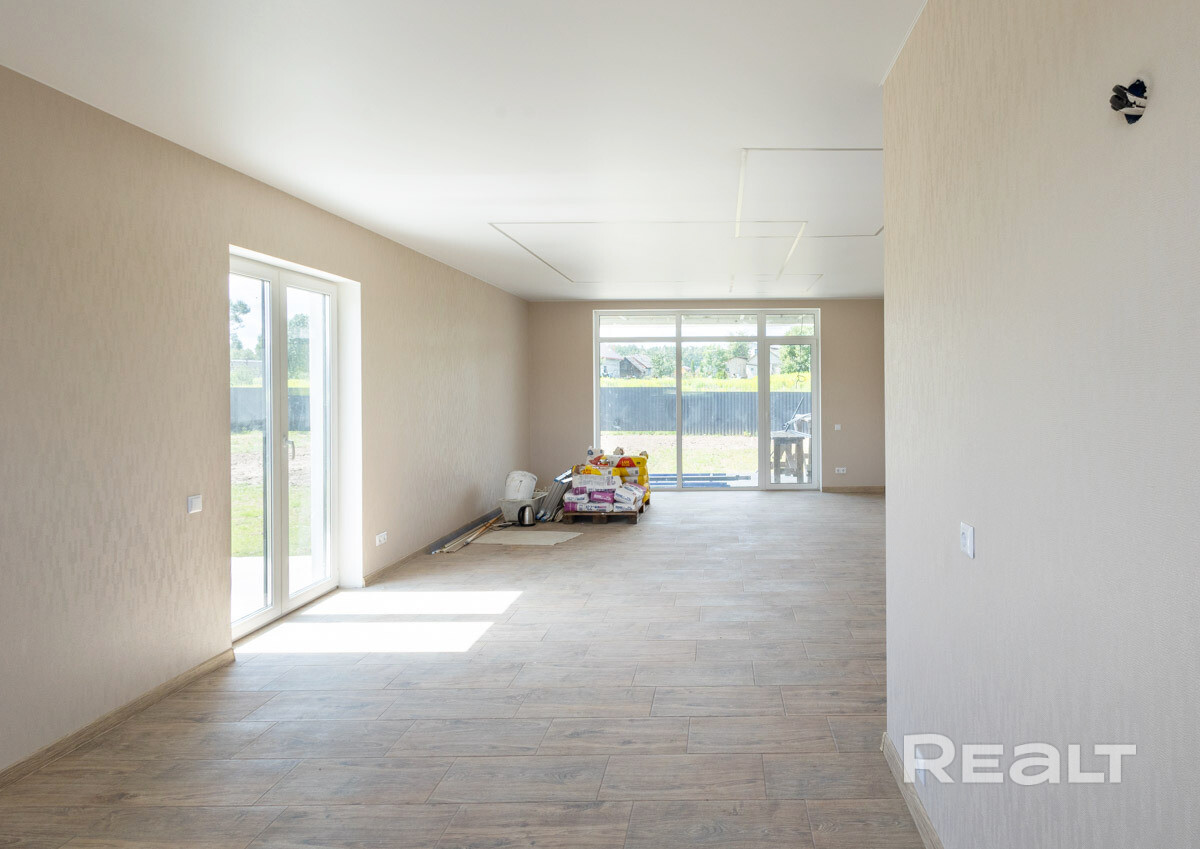 Продается новый дом с архитектурой в стиле "современный минимализм" — 100% готовность к проживанию, никаких доделок и строительной суеты. Удачное расположение — деревня Большая Шатановщина, Дзержинский район, всего 10 минут до Дзержинска и 30 минут до Минска по качественной асфальтированной дороге.
