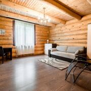 Дом полностью готов к проживанию. Стены и перекрытия из кругляка сосны 400 мм, прошедшего усадку и всю необходимую обработку для эксплуатации. С трех сторон окружен лесом: сосны, дубы и орешники.