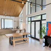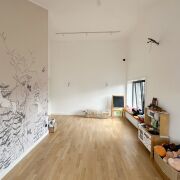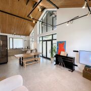 С первого взгляда дом располагает к себе: тёплое дерево, высокие потолки, мягкий свет, простые и честные материалы. Всё здесь — про внутреннюю свободу, спокойствие и устойчивость.