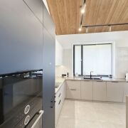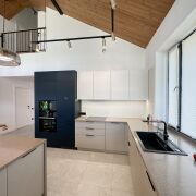 • Потолки — гипсокартон, в зоне кухни-гостиной — дерево