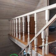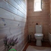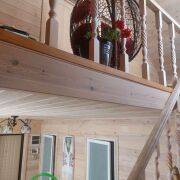 Перекрытия – балки. Окна – современные энергосберегающие стеклопакеты. Внутренняя отделка экологически чистыми материалами. Водоснабжение – скважина. Канализация – местная (переливная). Отопление – электрическое. Есть печь– камин длительного горения. На 1 этаже – кухня-гостиная - 18,3м2, ванная комната, санузел- 9,4 м2, кладовая 4,6м2, крытая веранда 9,8 м2. На 2 этаже – 2 жилые комнаты 26,5м2 и холл 11,7м.2.