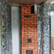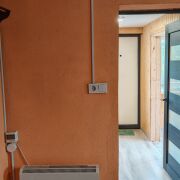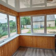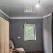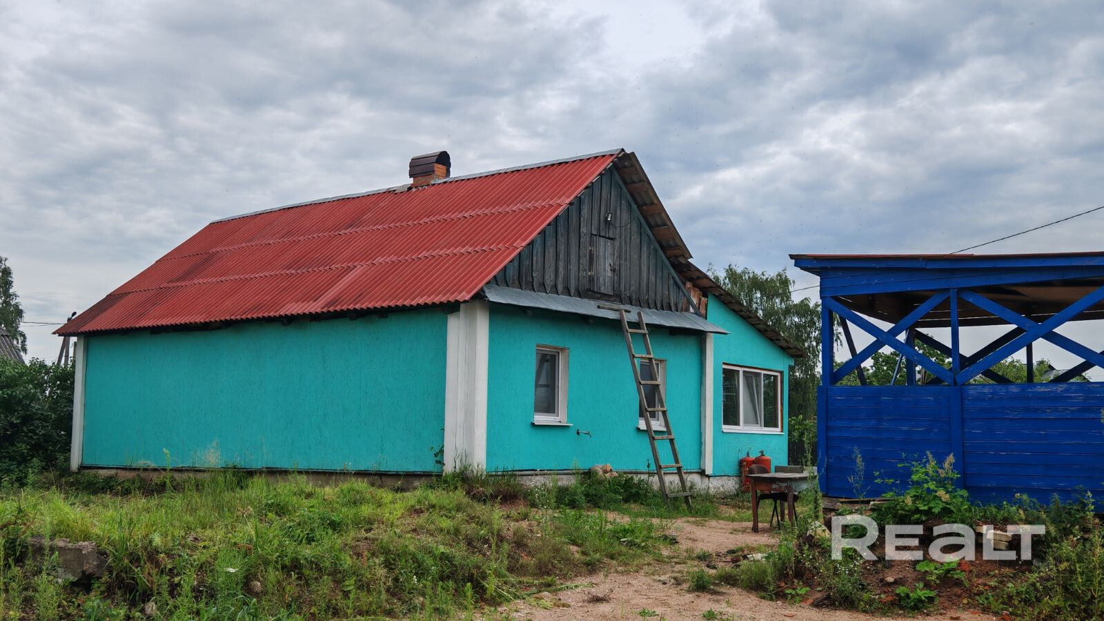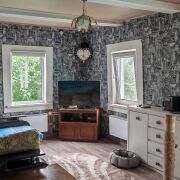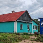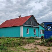 Дом построен из бруса. Крыша — волнистый шифер. В доме установлены окна ПВХ. Пол – ламинат.