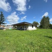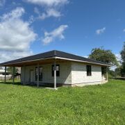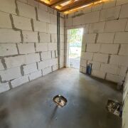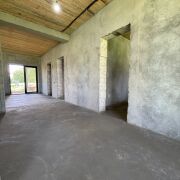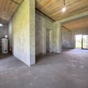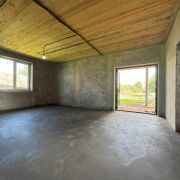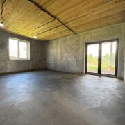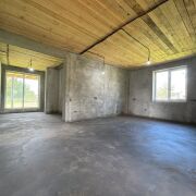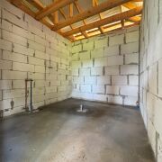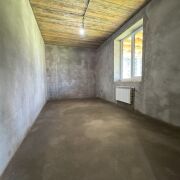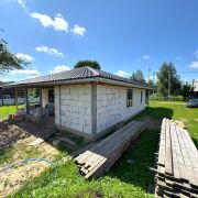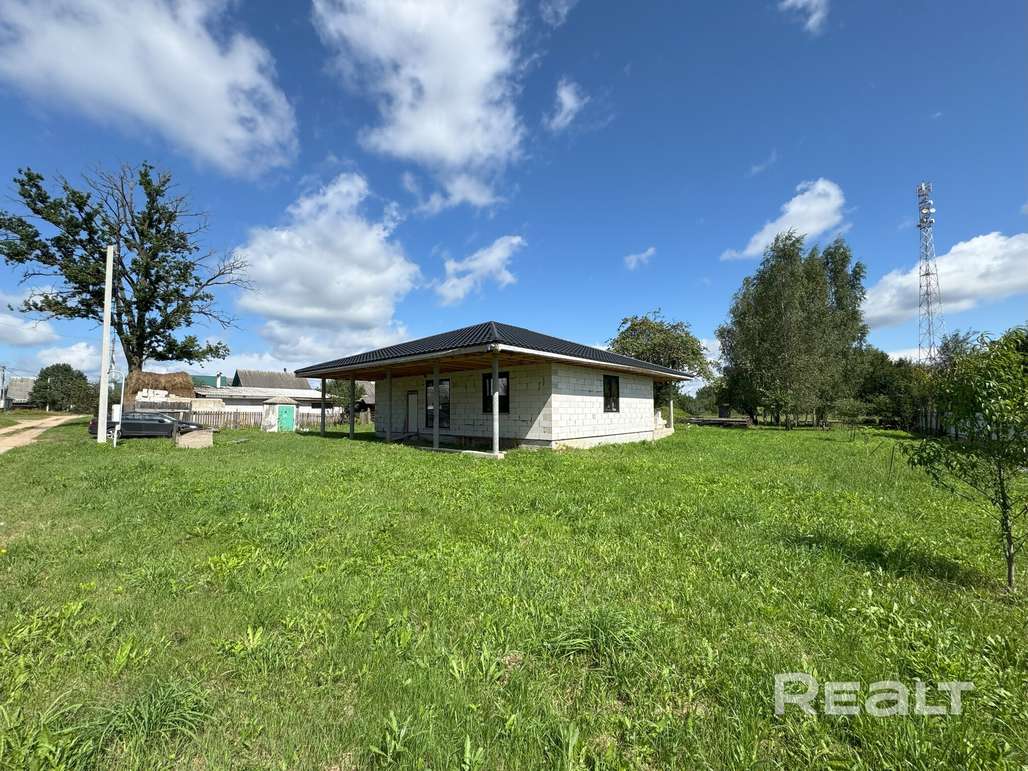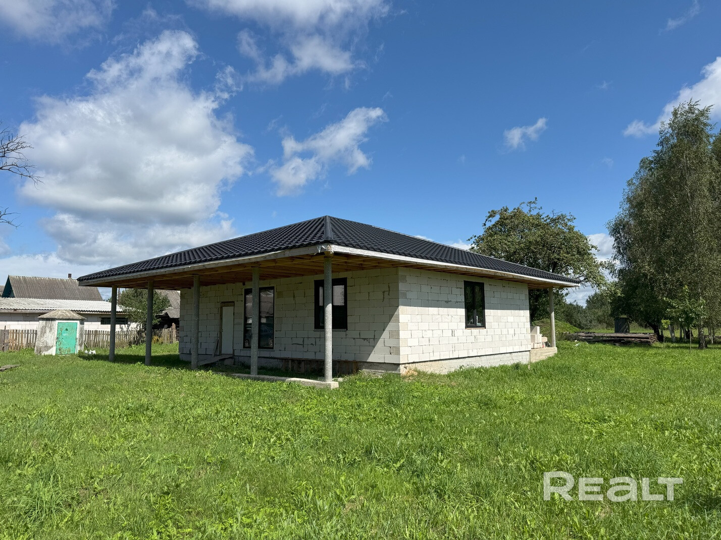 Фундамент свайно-ростверковый, стены из газосиликатных блоков толщиной 40 см., установлены хорошие стеклопакеты (veka 82 профиль), крыша 4-скатная (вальмовая), утеплена мин. ватой, покрыта металлочерепицей (Флоренция 9005 мат). Залита чистовая стяжка. Стены оштукатурены. Проводка разведена.