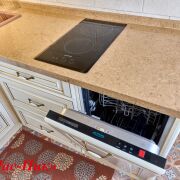2 окна, шторы, 2 люстры, качественная и элегантная отделка керамогранитом пола, стен и печи, горячая и холодная вода, кухонная мебель в отличном состоянии, много навесные шкафчиков и выдвижных ящиков, столешница - искусственный камень. Полностью укомплектована техникой: Холодильник, ТВ, Посудомойка, варочная поверхность, вытяжка, духовой шкаф + пароварка Smeg, СВЧ + гриль Smeg, Тёплый пол.