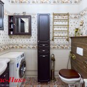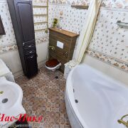👉Санузел: отделка плиткой до потолка, угловая ванна, унитаз, раковина, мебель, стиральная машина, люстра, Тёплый пол.