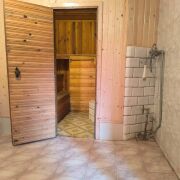 - Баня: стены = кирпич, отделка = дерево + плитка, печь на дровах, проведена вода Горячая + Холодная, свет, отдельный колодец канализации.