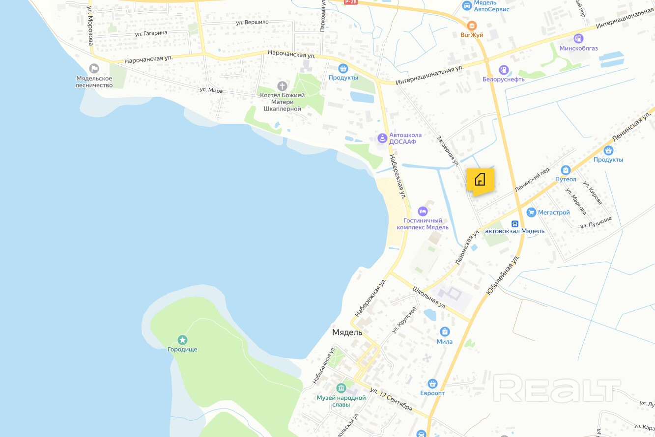 Участок с домом на берегу озера Мястро (г. Мядель, ул. Заозерная) 15 соток.