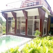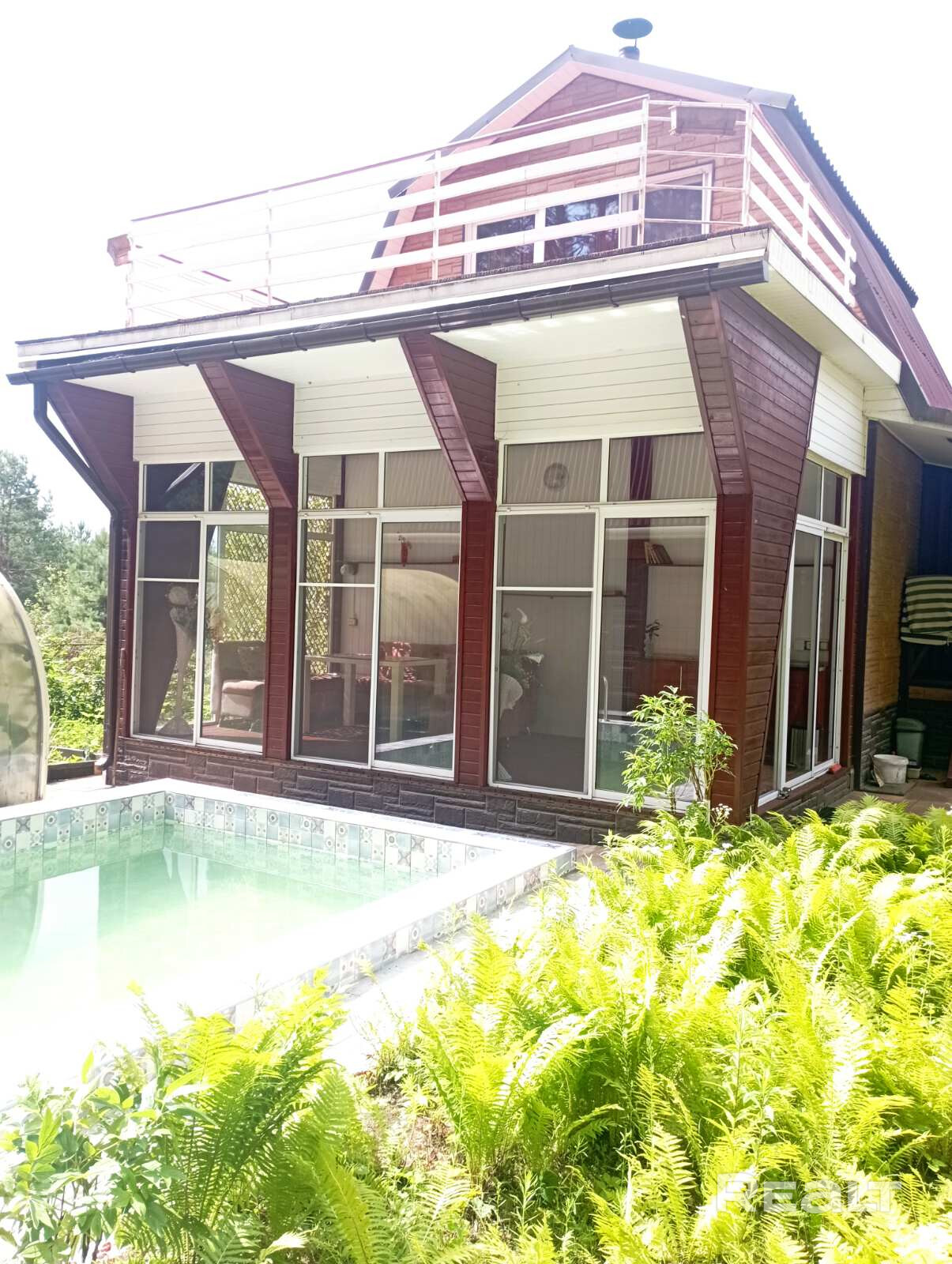 Дом + отдельная баня с комнатой для отдыха + бассейн 3.5 × 4.5 (плитка). Скважина с разводкой воды по дому и бане (горячая и холодная вода), канализация, санузел в доме + биотуалет в бане, 2 душевые кабины с проточными бойлерами, просторная остекленная терраса. Участок 10 соток, водоем, место для шашлыка. Рядом лес, речка.