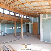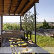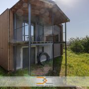 - Дом 2-х уровневый. На 1-м уровне (60 м.кв.) – котельная, хозкомната, кладовая. На 2-м уровне (135 м.кв.) – кухня-гостиная (52 м.кв.), по периметру гостиной панорамные окна, что обеспечивает свет любое время суток; из гостиной выход на террасу 15 м.кв.; 2 жилые комнаты: 16,3 и 20,2 м.кв; ванная комната (10,6 м.кв.), постирочная (9,6 м.кв.) и гардеробная (6,3 м.кв.). Из спальной зоны предусмотрен выход на террасу (на восток).