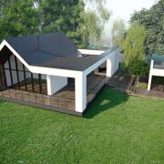 Терраса, прилегающая к дому в едином фасадном исполнении, составляет более 50 кв.м., что позволит собираться большим компаниям и отдыхать в окружении природы.