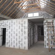 В доме пространство помещений разделено перегородками из газосиликатного блока. Изюминка данного проекта – объемный, атмосферный «второй свет».