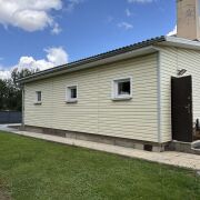 В доме три изолированные жилые комнаты, большая кухня-гостиная, раздельный санузел. Есть возможность обустроить две жилые комнаты на втором этаже.