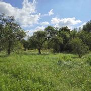 Участок 13,64 сот, постоянно обкашивается. С улицы забор деревянный, по бокам и сзади- сетка, участок полностью огорожен.