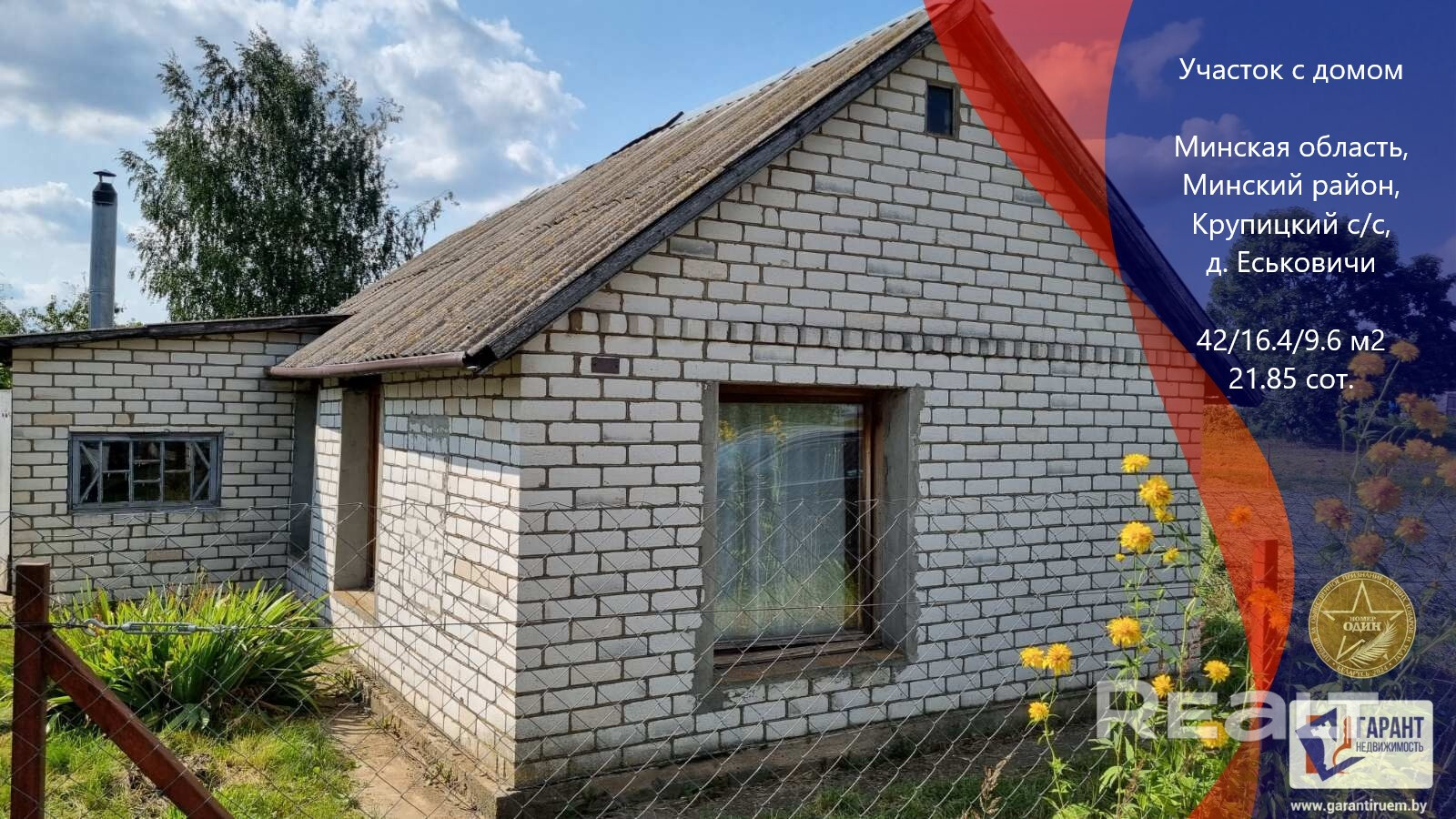 Продается дом, в деревне, 28 км от МКАД, Слуцкое направление, в деревне одна улица, рядом агрогородок Крупицы, где расположена вся необходимая социальная инфраструктура: школа, детский сад, магазины, почта, центр культуры, баня. +++На участке имеется дом общей площадью 42 кв.м, что позволяет использовать его как для проживания, так и при варианте строительства нового дома, как склад стройматериалов или проживание бригады строителей. Участок прямоугольной формы, ровный, огорожен сеткой. Подведено оптоволокно, во дворе скважина, имеется гараж, баня и сарай, подключено электричество.