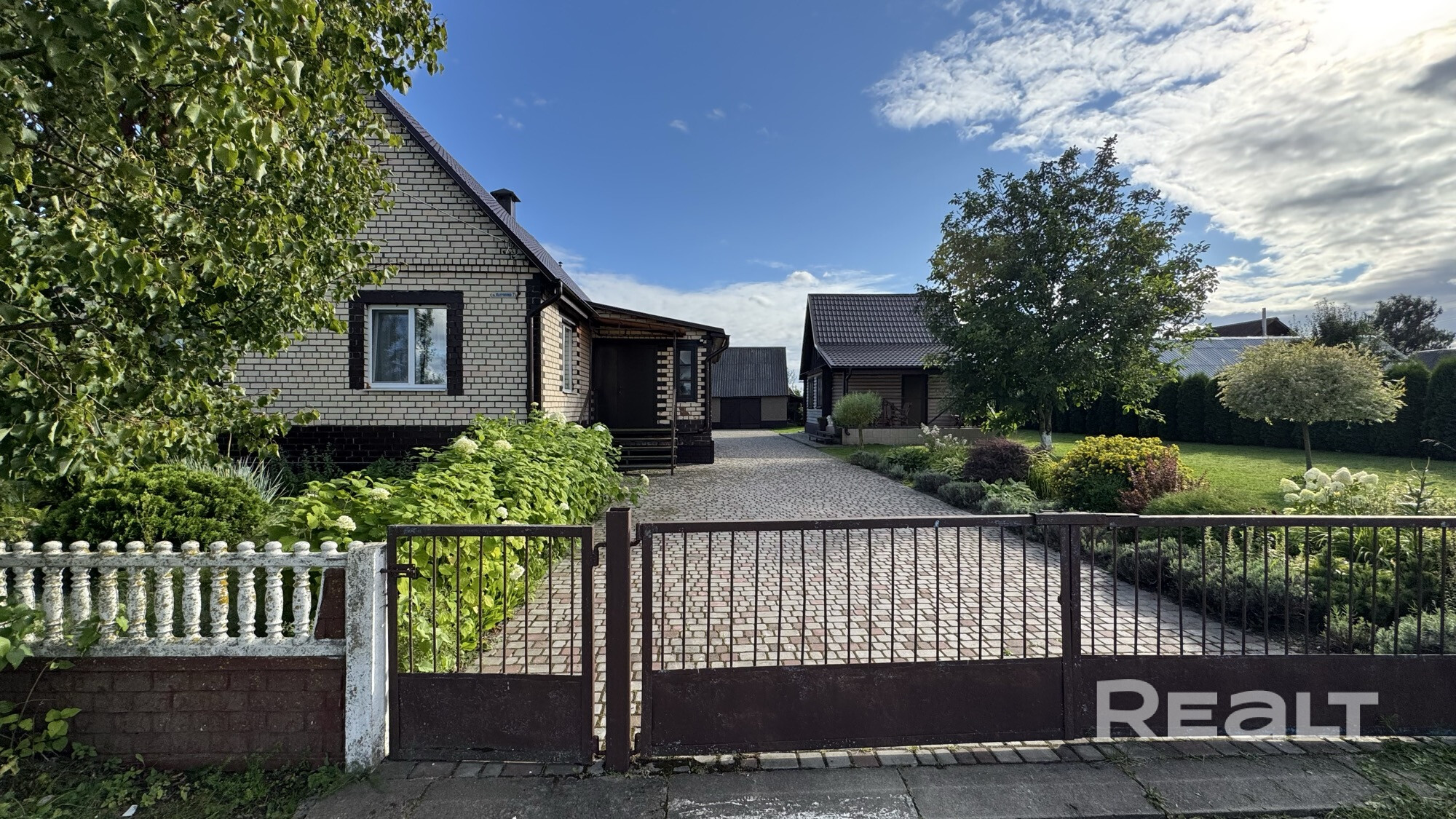 Подъездные пути - новый асфальт до ворот, дворовая территория - плитка по геотекстилю(ровная, как стекло), на участке летний дом(сруб) 6*6м с террасой, обновленный сад, хозпостройки материал дома - блок + кирпич, 10м от дома пруд для релаксации и рыбалки, расположение дома тупиковое(как на хуторе) и при этом в 300 м Евроопт super, большой строительный магазин, рынок, барбершоп, больница, аптека.