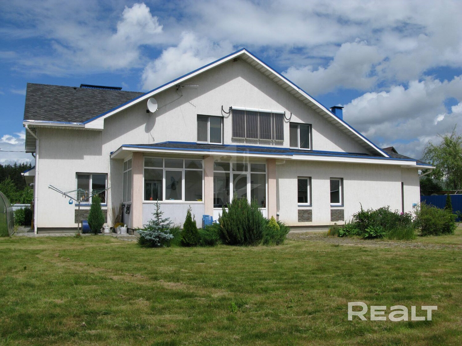 Участок 15 соток, в частной собственности, кроме основного дома есть гостевой дом с баней, и барбекю. Весь участок огорожен забором из метало-профиля, по кругу обсажен туями, и можжевельником. Выполнены тротуарные дорожки, зоны отдыха. Основной и гостевой дом окрашен в один стиль и выполнен из одних компонентов.